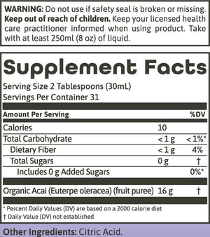 | Organic Acai (Euterpe oleracea) (fruit puree) | 16g | * |