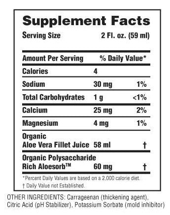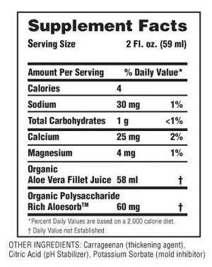 Suggested Usage: Upon opening, refrigerate immediately. Take 2 ounces (4 Tbsp) per serving, alone or mixed with a favorite juice. Up to 8 ounces daily. For those with more severe digestive issues, we would recommend you take the aloe 15-30 minutes before each meal. Recommended to consume within 5-6 months after opening. Made with 99.5% certified-organically grown aloe vera Aloe content purity certified by IASC Certified Kosher No water added
