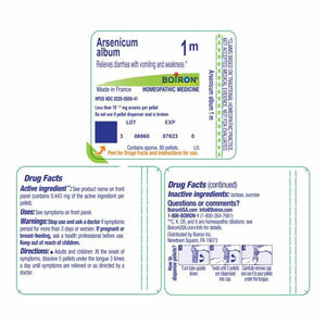 Customize your care with Boiron single medicines for highly targeted relief. Arsenicum Album 1M is a homeopathic medicine that relieves diarrhea with vomiting and weakness.* The pellets melt in your mouth and can be taken on the go, no food or water needed.