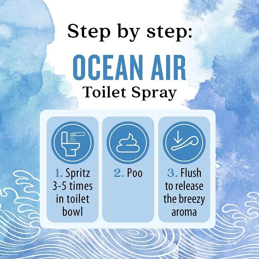 Calm is just a spray away with Aura Cacia Ocean Air Toilet Spray. Notes of citrus, lavender and blue tansy create a peaceful, relaxing aroma that brings the beach breeze to your bathroom.