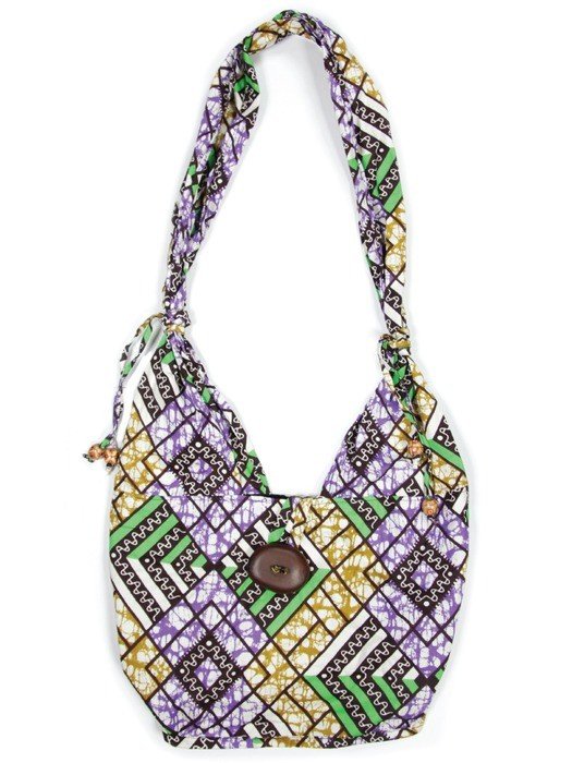 Carry everything you need (and more) in this chic satchel. The spacious interior features a smart phone pocket and an African dream seed fastener provides easy access to your belongings. Hand-printed West African fabric and beaded tassels add sophisticated air. A wide, comfortable fabric strap makes this bag the perfect weekender. This item is handmade, patterns and colors may vary.