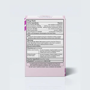 Arnica Montana 30X HPUS, Calcarea Carbonica 12X HPUS, Calcarea Phosphorica 12X HPUS, Chamomilla 12X HPUS sore, sensitive or swelling gums Coffea Cruda 6X HPUS, Ferrum Phosphoricum 12X HPUS