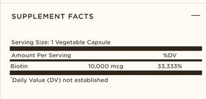 Warnings:Keep out of reach of children. As with all dietary supplements, consult your healthcare professional before use. See product label for more information. If you are pregnant, nursing, taking any medications, have any medical condition, or are planning to undergo any clinical lab testing, consult your healthcare practitioner before use. Some supplements may interact with certain medications and/or interfere with certain lab tests. It is advisable to consult your healthcare practitioner before using biotin doses above 2,500 mcg per day. If any adverse reactions occur, stop use and consult your healthcare practitioner. Keep out of reach of children. Store at room temperature. Do not use if outer bottle seal is missing or damaged.