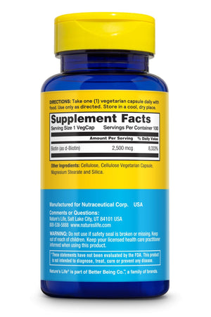 | Biotin (as d-Biotin) | 2,500 mcg | 833% |