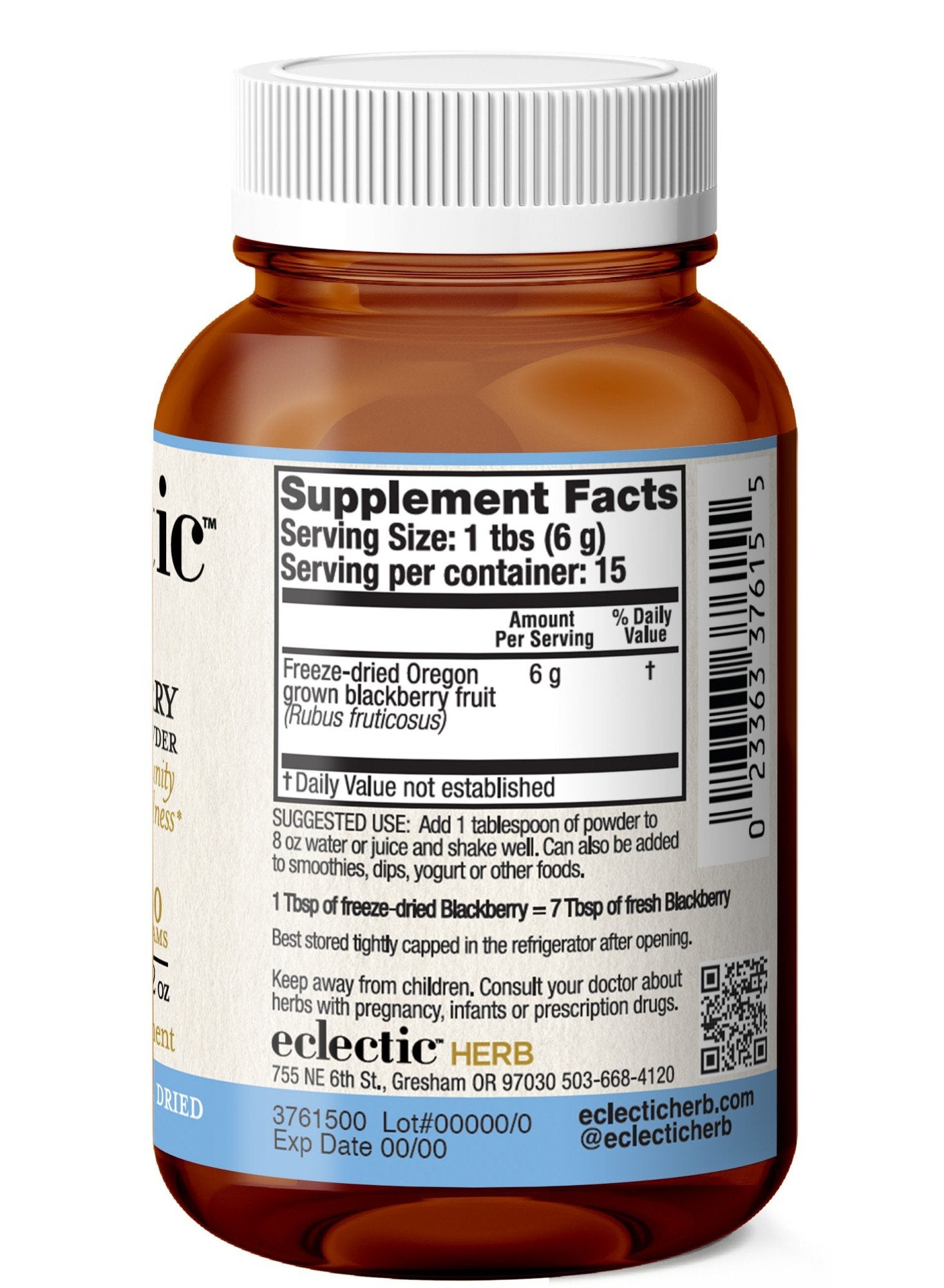 Premium Oregon grown blackberries are hand harvested at peak potency and small batch freze-dried in-house