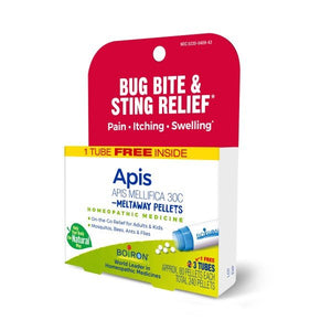 Customize your care with Boiron single medicines for highly targeted relief. Apis mellifica is a homeopathic medicine that is taken orally to relieve the pain, itching, and swelling of minor bug bites.* Ideal for adults and children, its designed for stings from mosquitos, bees, ants, flies, and other common insects. The meltaway pellets dissolve in the mouth without water and come in easy dispensing tubes to take on the go. Benefits and Features: *Claims based on traditional homeopathic practice, not accepted medical evidence. Not FDA evaluated.