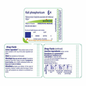 Customize your care with Boiron single medicines for highly targeted relief. Kali Phosphoricum 6X is a homeopathic medicine that relieves tension headaches associated with intellectual fatigue.* The pellets melt in your mouth and can be taken on the go, no food or water needed.