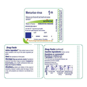 Customize your care with Boiron single medicines for highly targeted relief. Mercurius Vivus 1M is a homeopathic medicine that relieves sore throat with bad breath and excess salivation.* The pellets melt in your mouth and can be taken on the go, no food or water needed.