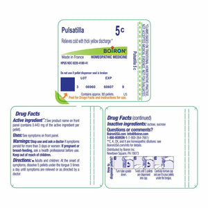 Customize your care with Boiron single medicines for highly targeted relief. Pulsatilla 5C is a homeopathic medicine that relieves cold with thick yellow discharge.* The pellets melt in your mouth and can be taken on the go, no food or water needed.