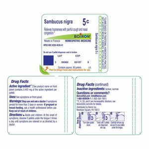 Customize your care with Boiron single medicines for highly targeted relief. Sambucus Nigra 5C is a homeopathic medicine that relieves hoarseness with painful cough and nasal congestion.* The pellets melt in your mouth and can be taken on the go, no food or water needed.