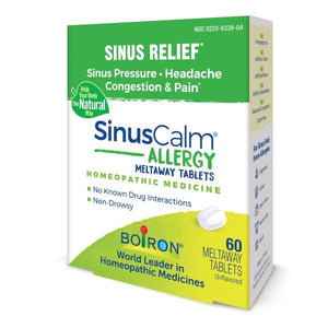 Melt seasonal sinus pain away with SinusCalm Allergy by Boiron. Unlike conventional medications that mask full-blown symptoms, SinusCalm Allergy works with your body to relieve nasal congestion, sinus pressure and pain, plus sinus headaches caused by allergies.* These non-drowsy meltaway tablets are phenylephrine-free and wont interact with other medications, including those for allergies one of the main causes of sinus congestion. *Claims based on traditional homeopathic practice, not accepted medical evidence. Not FDA evaluated.