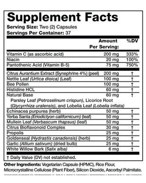 Support your bodys normal reaction to allergens with Aller-G Formula 25. Olympian Labs has included a natural combination of ingredients to help support your normal immune health including Goldenseal, Echinacea, Garlic, Yerba Santa, and Nettle. Vitamin C was added for its antioxidant properties to support normal immune health and Citrus Aurantium extract for maintaining everyday congestion.