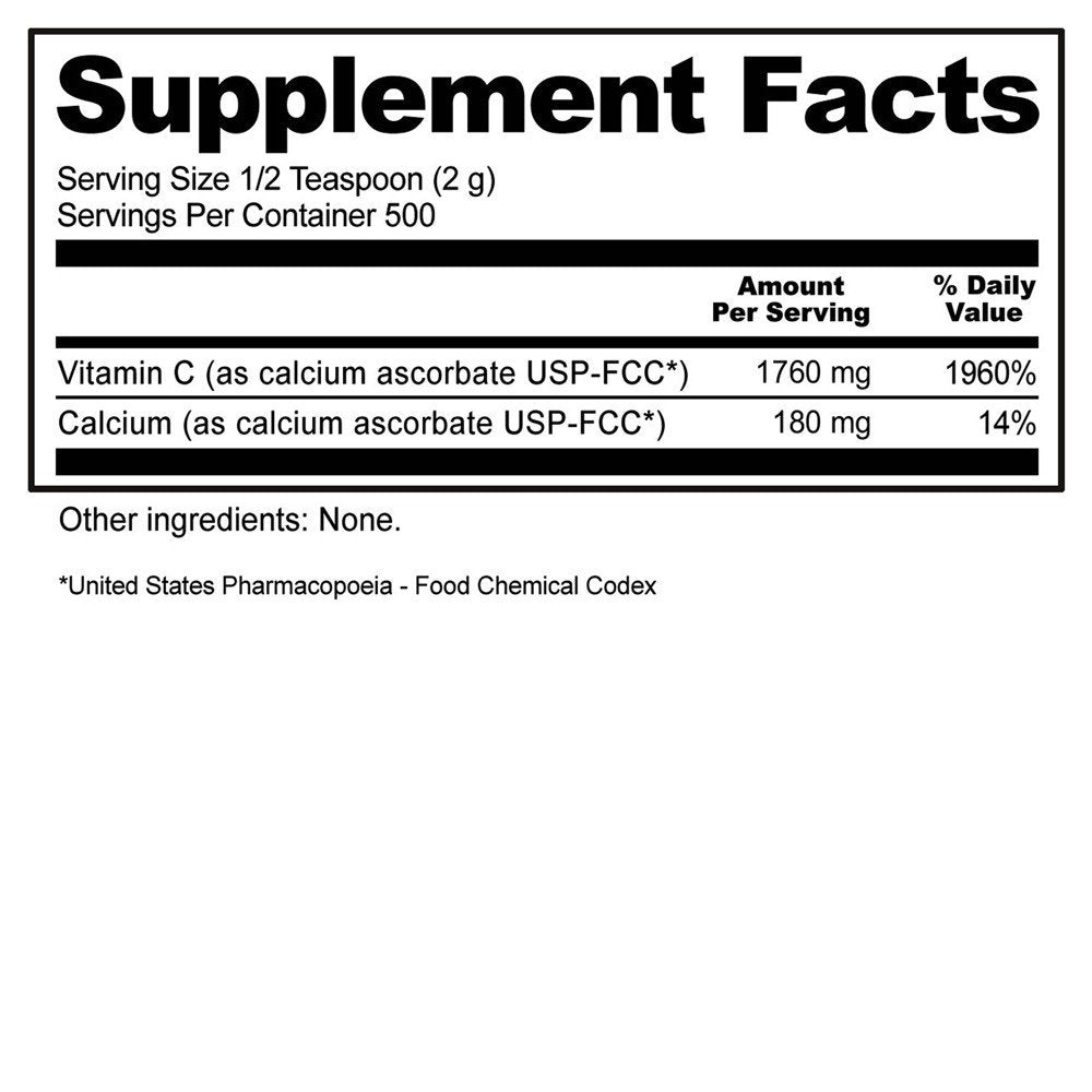 | Vitamin C (as calcium ascorbate USP-FCC) | 1760 mg | 1960% |