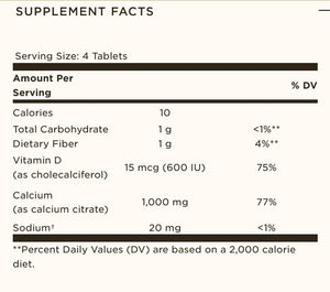 | Calcium (as calcium citrate) | 1,000 mg | 77% |