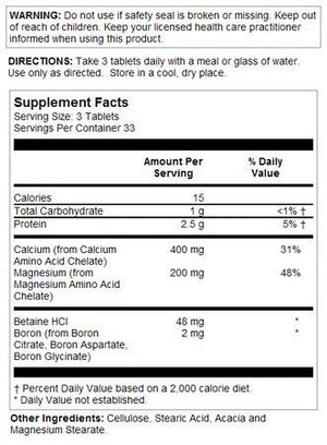 | Calcium (from Calcium Amino Acid Chelate) | 400 mg | 31% |