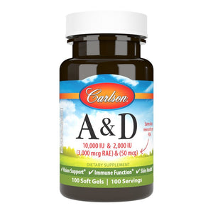 Vitamin A & D provides 10,000 IU (3,000 mcg RAE) of vitamin A from palmitate and 2,000 IU (50 mcg) of vitamin D3 from cholecalciferol to support healthy vision and immune system function.