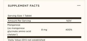 Manganese supports bone health and plays a role in joint health.* Manganese-containing enzymes are needed for healthy cartilage production.* Manganese also nourishes nerves and works with Super Oxide Dismutase (SOD) to function as an antioxidant in cells.* This formulation provides a patented form of chelated manganese.*