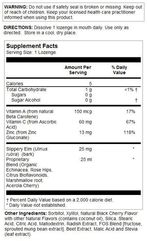 LoZINCges are intended to provide nutritive support for general well-being during the fall and winter months. With soothing ingredients Slippery Elm & Bee Propolis, KAL LoZINCges provide the perfect support in a great-tasting, cherry lozenge.