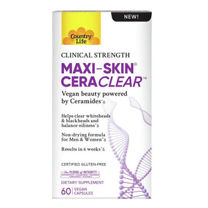 Maxi-Skin CeraClear is the first beauty supplement on the market in North America with Skin-Cera, clinically studied vegan ceramides from Konjac root. Konjac ceramides are a non-drying, non-cystic acne solution that helps clear whiteheads and blackheads.**