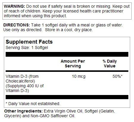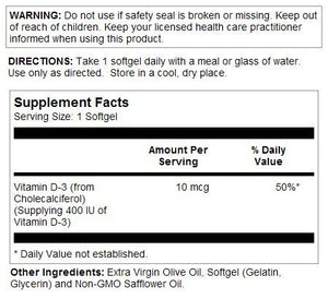 Vitamin D is intended to work synergistically with calcium and phosphorus. KAL D-400 is offered in easy-to-swallow softgels
