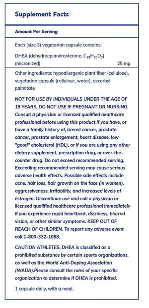 | DHEA (dehydroepiandrosterone, C19H28O2) (micronized) | 25 mg | |