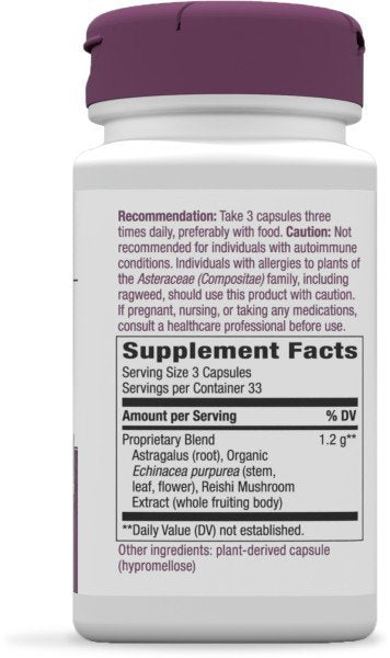 Warnings:Keep out of reach of children. As with all dietary supplements, consult your healthcare professional before use. See product label for more information. Not recommended for individuals with autoimmune conditions. Individuals with allergies to plants of the Asteraceae (Compositae) family, including ragweed, should use this product with caution. If pregnant, nursing, or taking any medications, consult a healthcare professional before use.