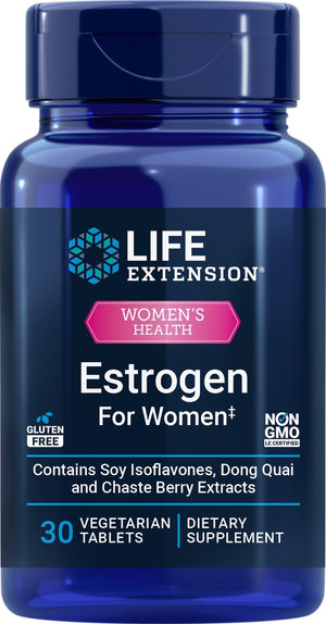 Estrogen for Women is a plant-based formula designed to help provide relief from hot flashes common during menopause and support female health. It delivers soy isoflavones and other botanicals such as Norway spruce lignans, broccoli, licorice, chasteberry and dong quai extracts, all in just a single tablet.