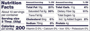 | Serving Size: About 10 servings per container | Servings Per Container: Serving size 2 Tbsp. (32 g) |