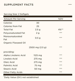 | Organic Flaxseed Oil | 2500 mg (2.5g) | * |