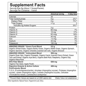 | Amazing Grass Antioxidant Blend Organic Rose Hips, Organic Pineapple, Organic Carrot, Acerola Cherry Extract, Green Tea Extract, Organic Acai, Organic Beet, Raspberry, Organic Goji, Organic Maca | 994 mg | * |