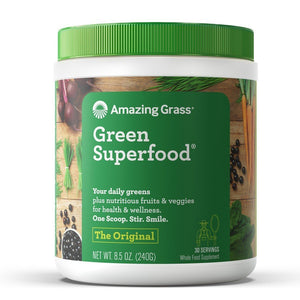 Our Amazing Grass Green Food Blend includes a proprietary combination of organic, non-GMO wheat grass, barley grass, alfalfa, spirulina, spinach, chlorella and broccoli. Every serving is chock full of all the necessary vitamins and minerals you and your loved ones need to startand finishthe day feeling healthy.
