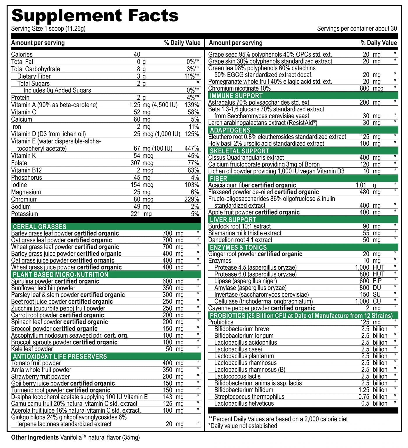 Green Vibrance 916.32 grams (32.32 Powder