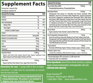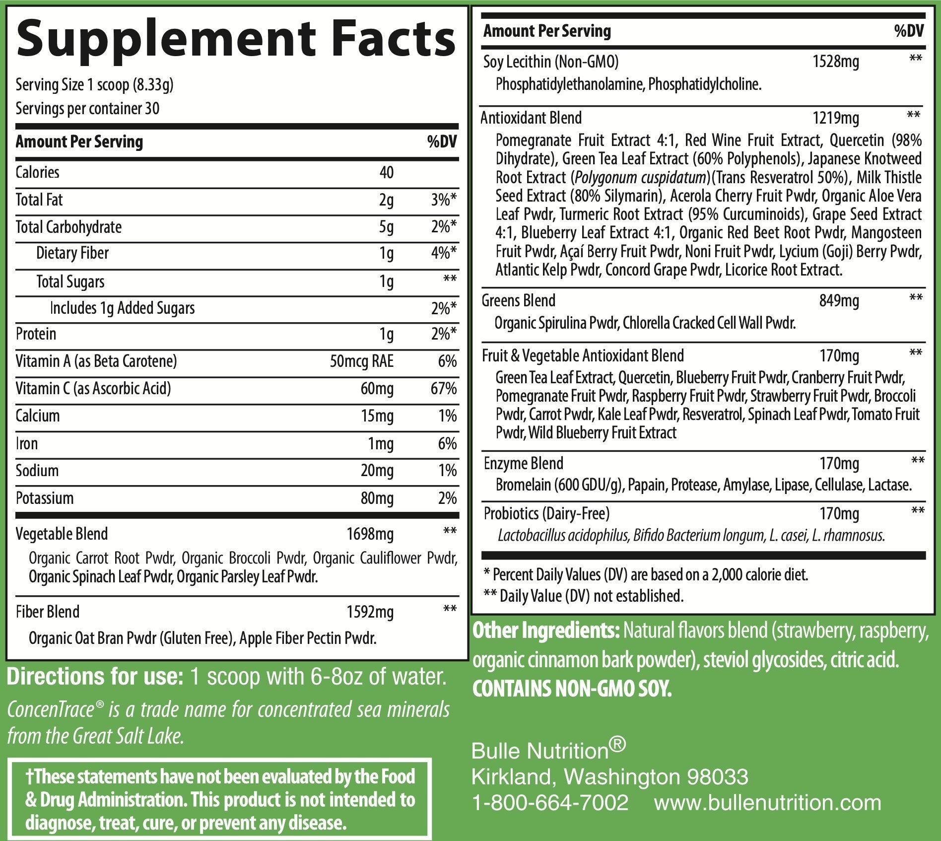 | Greens Blend Barley Grass Juice Powder(cert.organic),Chorella (Japanese cracked cell wall),Spirulina (cert.organic),Concentrace Alalfa ionic Trace mineral Complex 9proprietary blend) | 1675mg | ** |