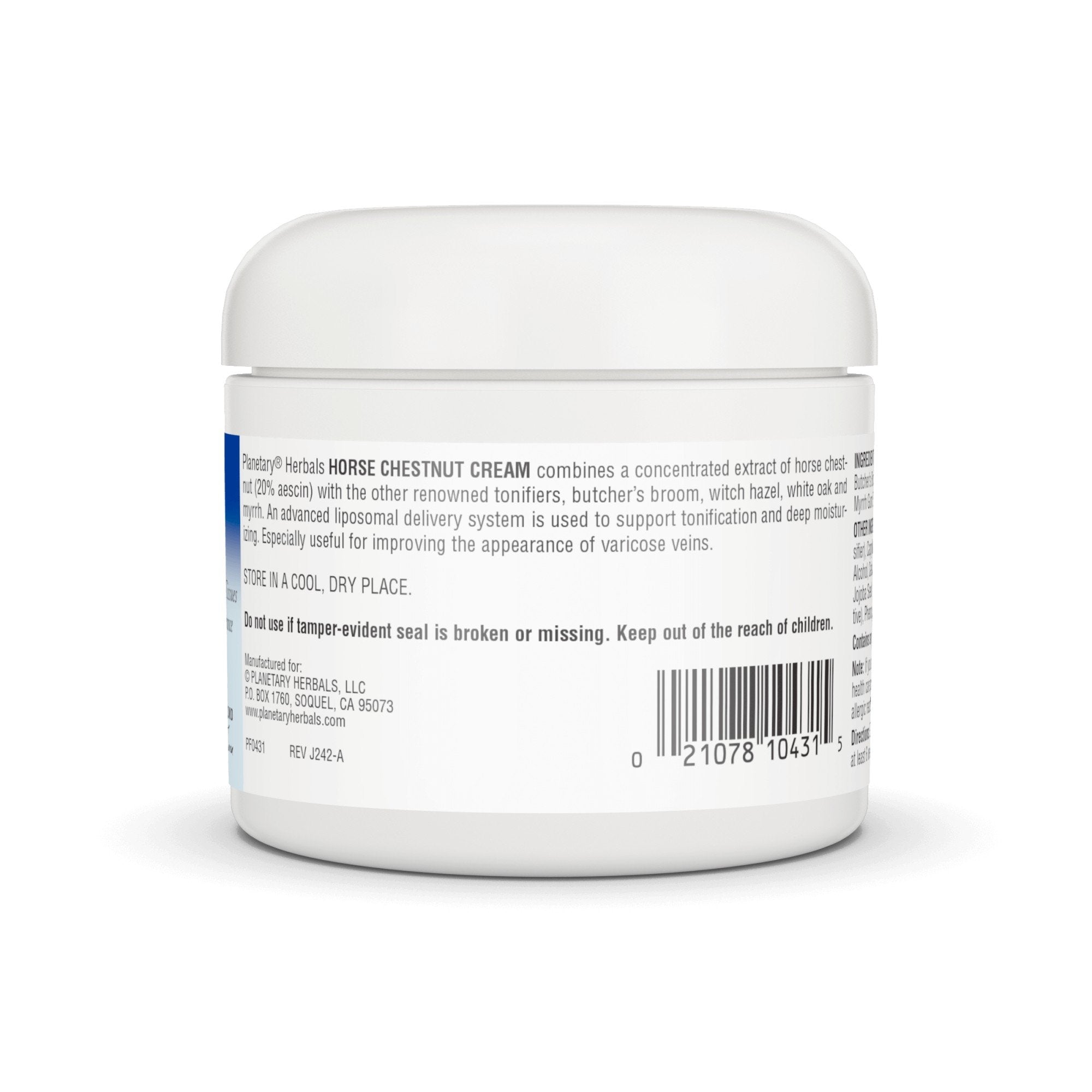 Planetary Herbals HORSE CHESTNUT CREAM combines a concentrated extract of horse chestnut (20% aescin) with the other renowned tonifiers, butchers broom, witch hazel, white oak and myrrh. An advanced liposomal delivery system is used to support tonification and deep moisturizing. Especially useful for improving the appearance of varicose veins.