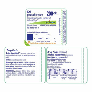 Customize your care with Boiron single medicines for highly targeted relief. Kali Phosphoricum 200CK is a homeopathic medicine that relieves tension headaches associated with intellectual fatigue.* The pellets melt in your mouth and can be taken on the go, no food or water needed.