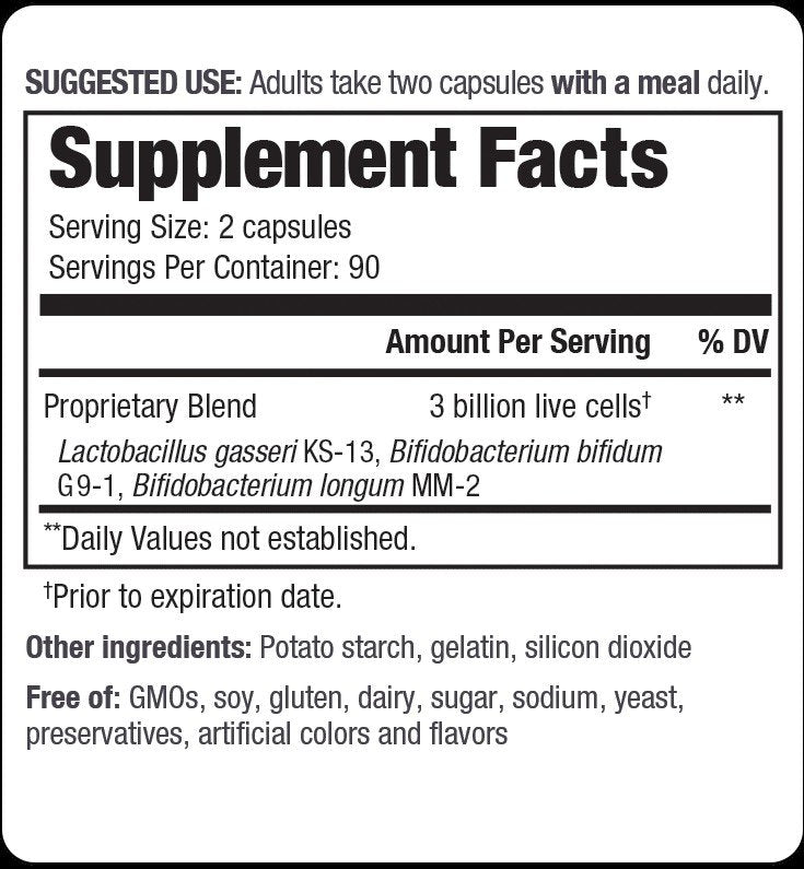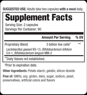 | Proprietary Blend Lactobacillus gasseri KS-13, Bifidobacterium bifidum G9-1, Bifidobacterium longum MM-2 | 3 billion cells | * |