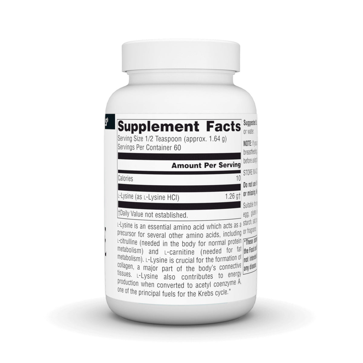L-Lysine is an essential free-form amino acid which acts as a precursor for other amino acids, including L-carnitine (needed for fat metabolism). L-Lysine is crucial to the formation of collagen, a major part of the body's connective tissues. L-Lysine also contributes to energy production when converted to acetyl coenzyme A, one of the principal fuels for the Krebs cycle.