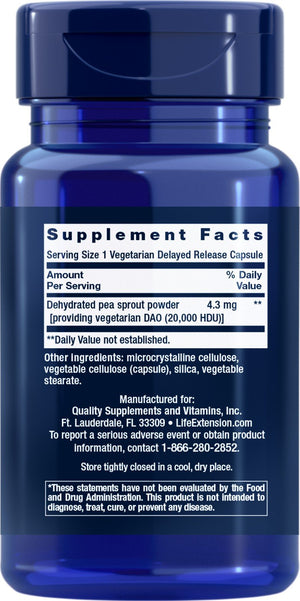 | Dehydrated pea sprout powder providing vegetarian DAO (20,000 HDU) | 4.3 mg | * |