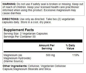 | Magnesium (as Magnesium Hydroxide) (Marine Source) | 500 mg | 125% |