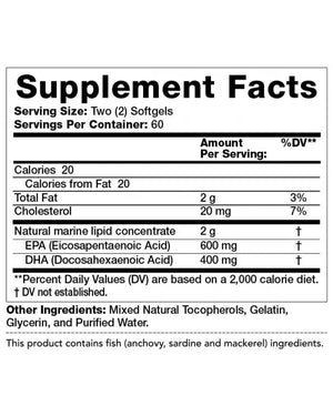 | Serving Size: 2 Softgels | Servings Per Container: 60 |