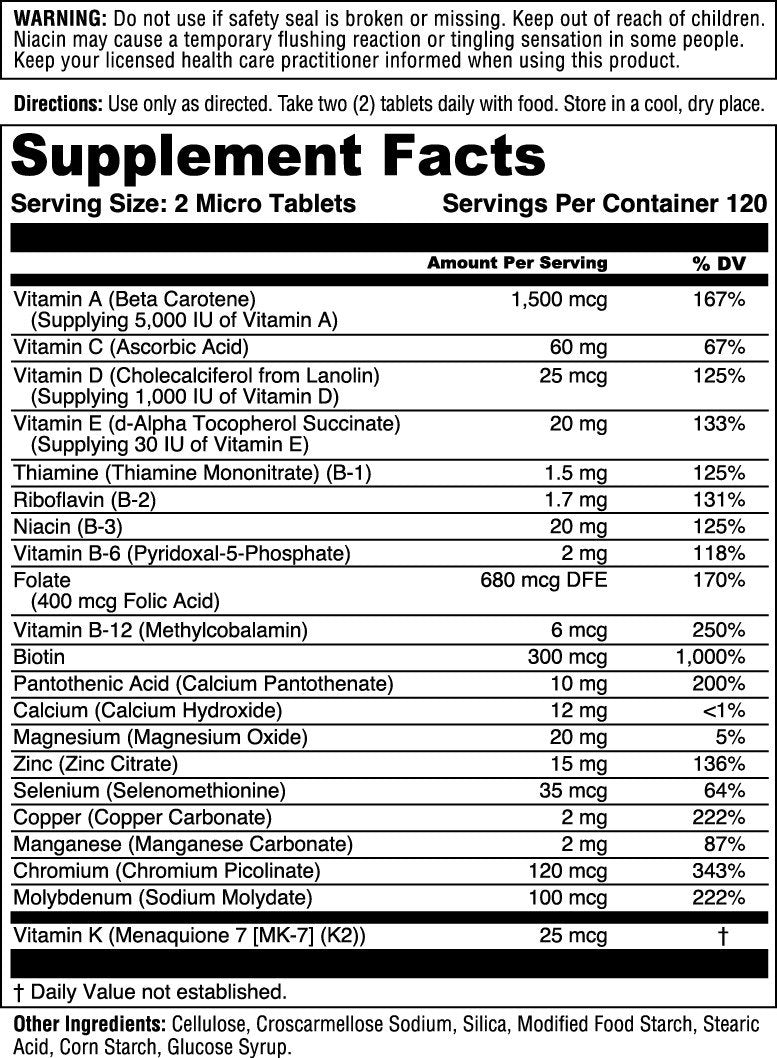 | Serving Size: 2 Tablets | Servings Per Container: 120 |