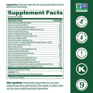 Other Ingredients:Microcrystalline cellulose, rice protein, ferment media (organic brown rice, rice protein, autolyzed yeast extract, yeast inactive, silicon dioxide, stearic acid, gum acacia, autolyzed yeast, hypromellose.