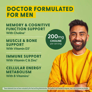 Our doctor-formulated, advanced multivitamin supports the unique nutritional needs of men. Made with 22 essential nutrients like choline for memory & cognitive function, vitamin C & zinc for immune health & vitamin D for muscle & bone health. Includes real food....