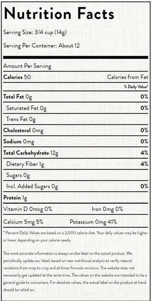 | Serving Size: 3/4 cup (14g) | Servings Per Container: About 12 |