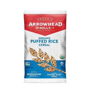 Arrowhead Mills Puffed Rice Cereal is made with puffed whole grain brown rice. Brown rice is the whole rice kernel, which is higher in fiber, vitamins, and minerals than white rice. Our cereal is low in fat and has no added salt or sugar. With whole grains and only 60 calories per serving, it is a good-for-you way to start your day.