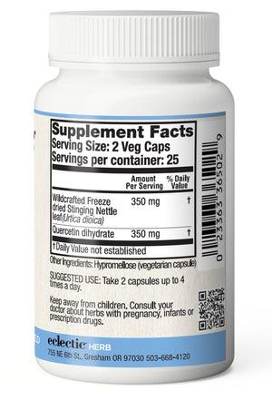 A naturopathic physician formulated blend of freeze-dried herbs to support sinuses and nasal passages* Each 350 mg capsule contains fresh freeze-dried Stinging Nettle (Urtica dioica) leaf and Quercetin dihydrate.