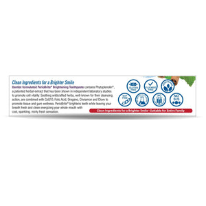 Presenting PerioBrites fresh new look for our PerioBrite toothpaste Cinnamint. Periobrite Cinnamint Toothpaste is gluten free, fluoride free, soy free, and vegetarian. Our herbal toothpaste uses no Sodium-Lauryl-Sulfate, no artificial sweeteners and no artificial preservatives. PerioBrite Cinnamint Toothpaste brightens, soothes and refreshes your gums without concern about unwanted chemical additives.