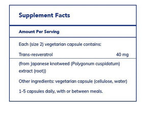 Resveratrol is a compound often associated with the health benefits of red wine, because of its powerful antioxidant and cardioprotectant properties. It promotes cardiovascular health through its antioxidant action and its ability to promote healthy platelet function and maintain healthy arachidonic acid metabolism. Pure Encapsulations Resveratrol is derived from one of the richest known sources, Polygonum cuspidatum, an herb utilized for centuries.