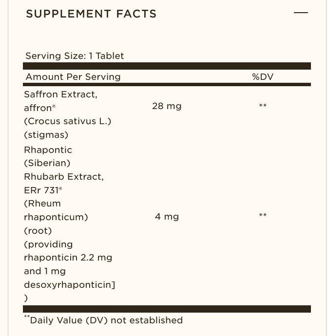 Solgar Menopause Relief is uniquely formulated to provide relief from a full range of common physical and emotional menopausal symptoms. Only Solgar Menopause Relief combines the hormone-free, clinically studied ingredients Siberian Rhubarb (ERr-731) and affron Saffron.
