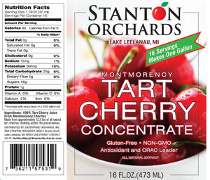 Individual 16 oz. bottle of Stanton Orchards' tart cherry concentrate